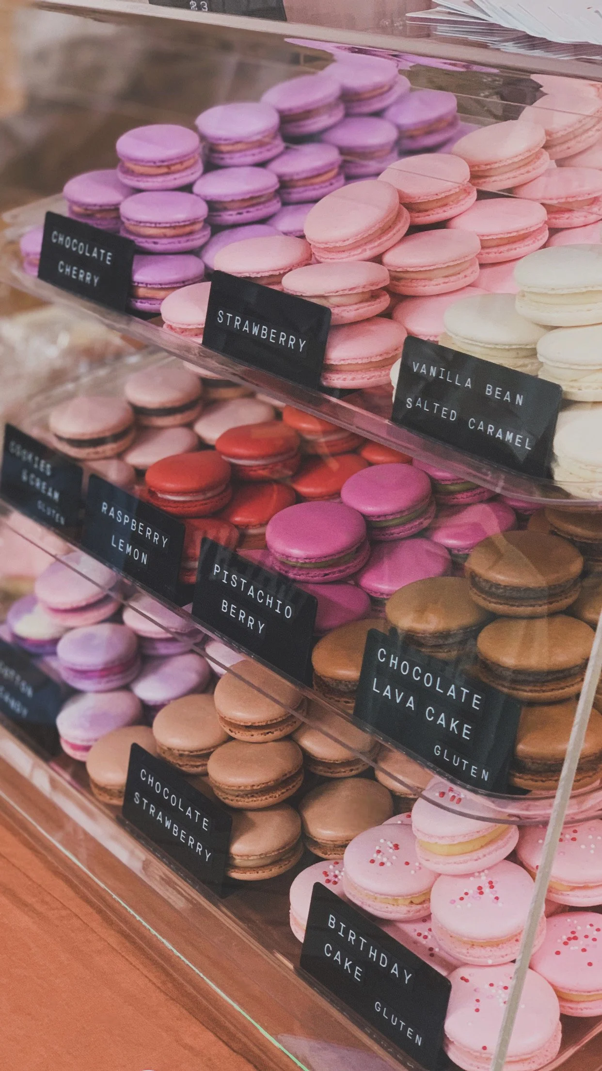 macaron flavors change seasonally, and we often have new/exclusive flavors at our markets & pop ups.